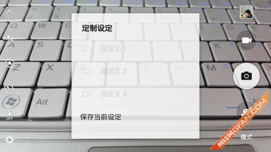 相机中加入了目前主流的专业模式,可以满足手动挡网友的拍照需求,这里值得一提的是,S6 Edge的专业模式中还增加了自定义选项,意思是用户可以保存三种自定义调节后的参数,如果在某种特定的环境下拍照较多,日后就不用每次都对参数进行调节了。