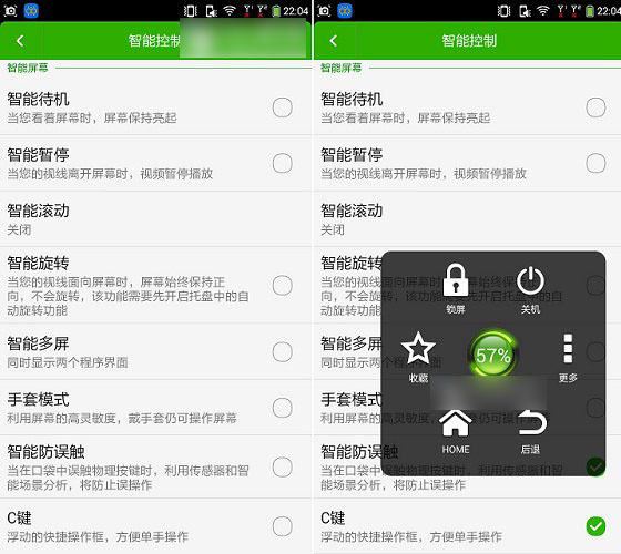 在Cool UI 5.7智能选项设置中,我们还可以开启浮动C键和智能多屏功能。其中,浮动C键融合了用户在日常生活中使用频率比较高的一些功能,可有效减少实体按键的损耗。类似于iPhone的小白点功能。而智能多屏,则通过启动侧边栏的应用程序,实现一边看新闻一边发信息,使屏幕空间得到有效利用。