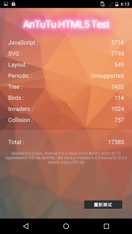 Moto X Pro安兔兔HTML5测试得分