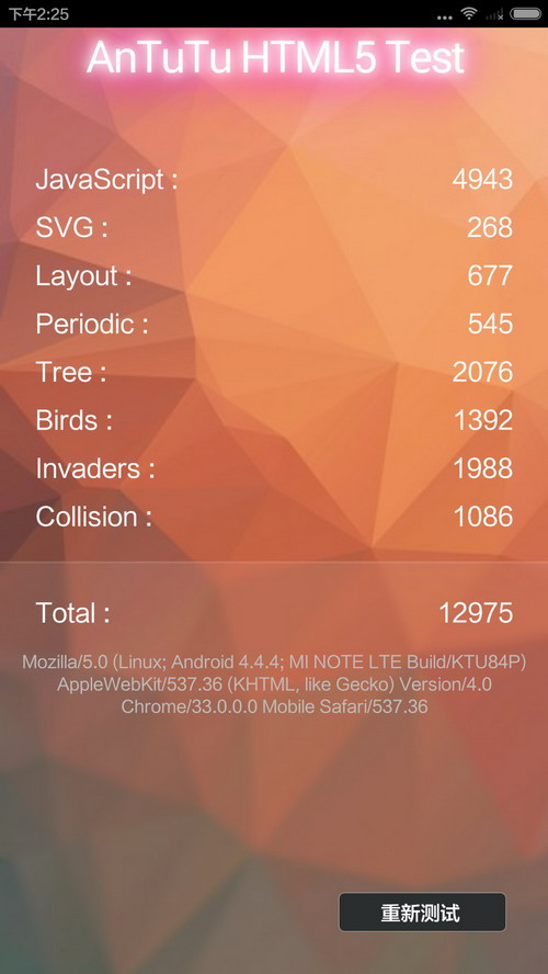 小米Note安兔兔HTML5测试得分