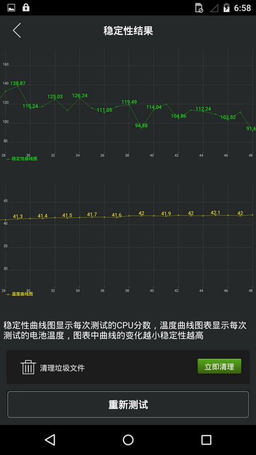 稳定性测试实际上小米Note要好得多,我们发现Moto X Pro在运行一段时间满载之后,会有明显的温度升高情况,而且提升幅度比较大,导致了性能有所降低,不仅性能不够稳定而且发热量较高。小米Note相对来说性能没有明显降低,温度控制的比较均匀。当然这样的表现也说明了骁龙801实际上比骁龙805更加成熟,更适合应用在手机当中,这也就是为什么很少有手机厂商选择性能强的骁龙805的原因。