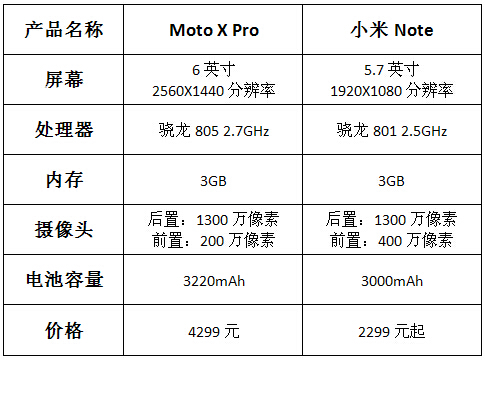 Moto X Pro与小米Note哪个好?Moto X Pro与小米Note区别对比评测