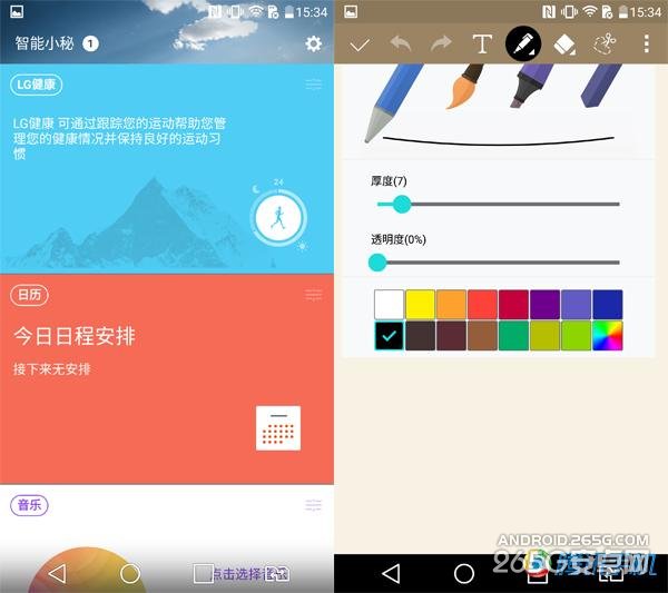 功能相比之前我们评测过的LG G3其实并没有感觉到太明显的差异,比较好玩的是主屏幕的一个瀑布式的智能小秘集合工具和那个Quick备忘录+。如今HTC、三星、索尼都在定制界面上下足了功夫,Sense的本土化、TouchWiz的美观、索尼的独特让用户很容易分辨系统本身的特点,然而LG G4的定制系统却没能带给我们太大的惊喜。