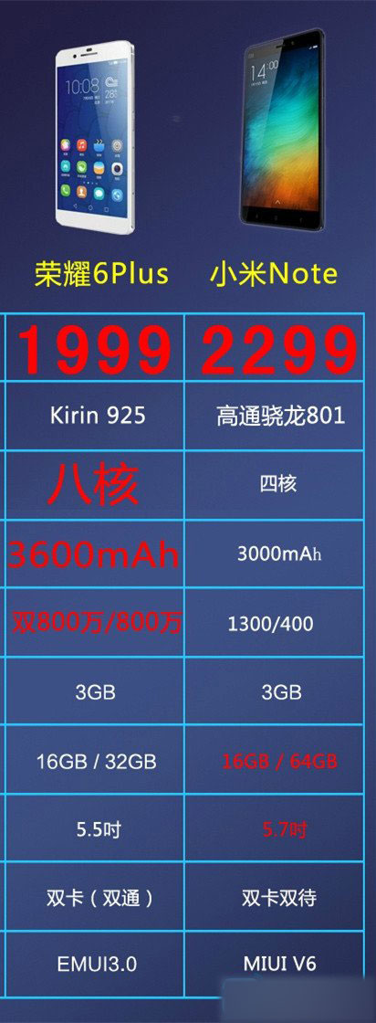 相关问题:华为荣耀6 Plus与小米Note哪个好