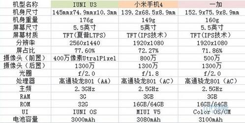欢迎您阅读本文,今天要和大家分享的手机评测知识是:【IUNI U3/一加/小米4哪个好 IUNI U3/一加/小米4参数对比全面评测】,下面是详细的讲解!