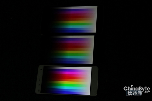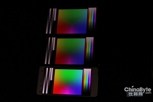 在整体测试中,三块屏幕在蓝紫过度时均表现生硬,小米4在绿色方面表现不错,一加相对于另外两块屏幕色彩表现略弱,黄绿以及红紫过度都有明显的分界线。