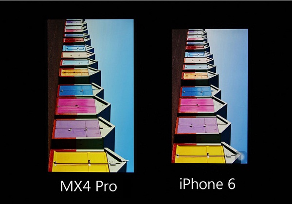 ,其特性方面包括拥有450尼特的屏幕亮度和72%的NTSC色域表现,另外还表示拥有全新的Nega负液晶和LED背光模组,并配备了PSR自刷新技术,还可以降低静态页面功耗。魅族表示屏幕的色彩表现和iPhone 6几乎一致,下面我们就来对比一些魅族MX4 Pro和被誉为全球最好的iPhone6屏幕画质对比。