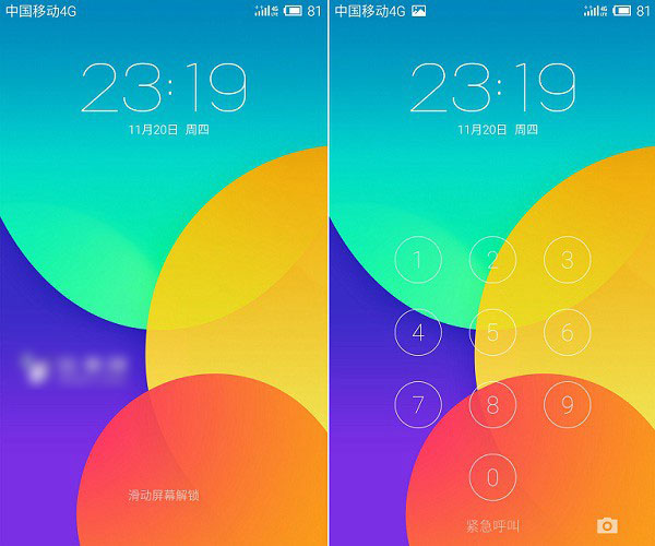 在系统方面,魅族MX4 Pro运行的是基于安卓4.4.4的Flyme4.1系统,相比MX4的Flyme4.0有所升级。Flyme4.1主打界面清晰,采用扁平化设计风格。相比前作,Flyme4.1加入了一些新功能,比如手势唤醒能直接进入到相应程序,语音唤醒可不用拿手机,在不方便接触手机时用语音完成拨号、查询天气路况等各种功能,下图为魅族MX4 Pro锁屏界面。