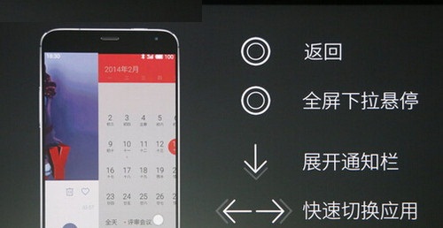 此外,魅族MX4 Pro还加入了Assistive Touch手势操作,类似iPhone手机,支持双击下拉悬停、下拉可唤出通知菜单、左右滑动可在程序间切换,如下图所示。