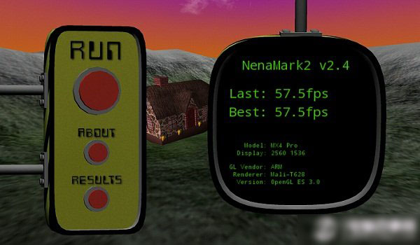 《NenaMark2》是一款用于Android设备硬件加速基准测试的程序,通过演示一段实时渲染的画面来对设备的图形能力进行检测,包括反射、动态阴影、曲面参数、复杂光线模式等内容。以上是通过《NenaMark2》测试魅族MX4 Pro图形性能,其GPU得分与高通801处理器GPU跑分类似,性能上还是非常出色的,对于各类大型应用与游戏都能够流畅运行。