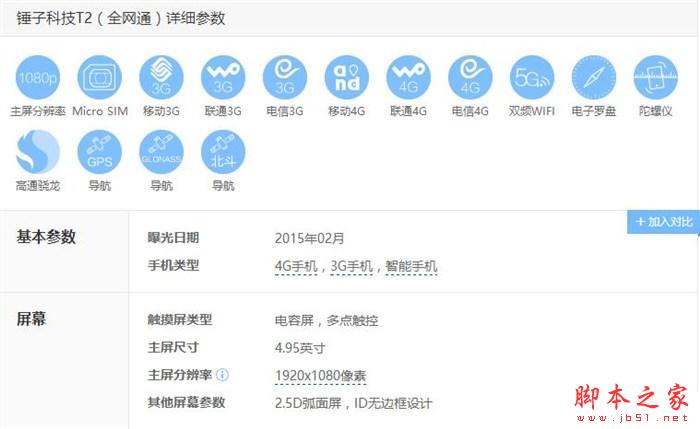 | 对比型号 | 锤子T2 | 锤子T1 |