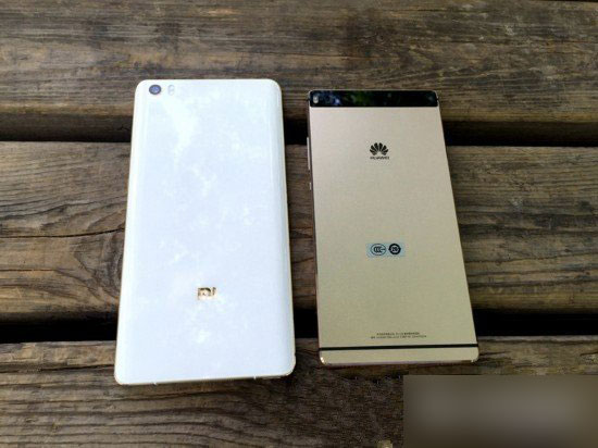 小米Note顶配版和华为P8设计上都采用了金属切面感,很有视觉感