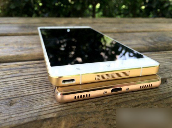虽说两部机器都是土豪金配色。但是小米Note顶配版采用的黄金色,P8采用的是玫瑰金色