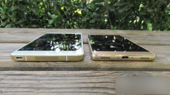 华为P8与小米Note顶配版的音箱都设置在了机身的底部。小米Note顶配版的音箱集中在中部区域,而华为P8则是分开在机身底部的两侧。