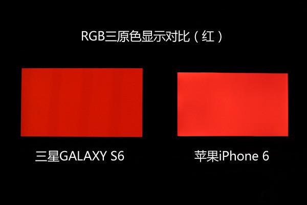 三星上一代旗舰仅有1920x1080像素分辨率的屏幕,让许多用户感到非常惋惜。如今三星Galaxy S6将屏幕分辨率升级到了2560x1440像素,屏幕尺寸仅为5.1英寸,而且继续采用了三星在高端手机上才会配备的Super AMOLED材质的屏幕。先来看一组和iPhone 6进行的三原色显示对比。