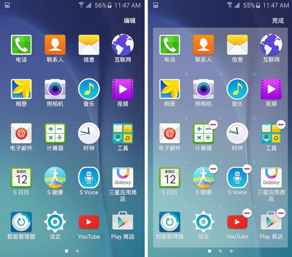 依然采用的是抽屉式的应用管理方式,长按可以呼出删除模式,点击应用右上角的减号即可删除。