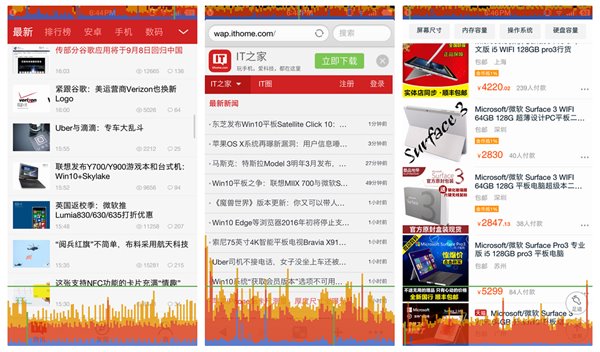 ▲从左到右依次为脚本之家、自带浏览器以及淘宝,其中浏览器页面快速滚动时的掉帧和卡顿感较为明显。此时坚果手机的骁龙615处理器高主频核心只有2个在工作,主频1.5GHz;而4个小核心保持在800MHz,也就是变成了一枚6核处理器,负载压力较大。