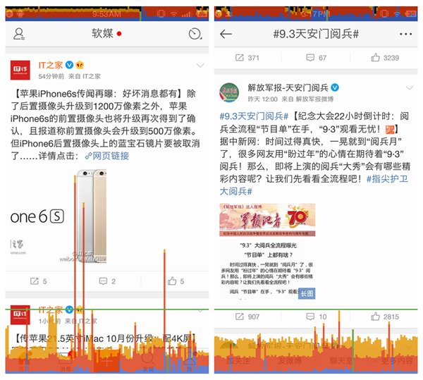 ▲坚果手机刷微博测试,受制于较为一般的eMMC存储以及SoC性能,坚果手机在快速滑动时(已经预先加载好图片),有明显的卡顿感。