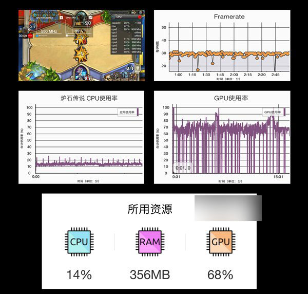 ▲在《炉石传说》游戏中,平均帧率约为29帧,不过受制于eMMC和整体性能,读取和加载的速度较慢,遇到动画较多的场景时,帧率也会下跌到20帧附近,画面可见较为明显的变慢和卡顿。
