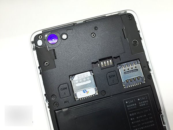 ▼坚果手机只支持移动联通双4G网络,对于电信用户来说稍显遗憾,卡槽位置位于背壳下方,采用双MicroSIM,也就是中卡卡槽。SIM1、SIM2位置支持的网络制式并不相同,左侧的SIM1支持移动/联通2G/3G/4G网络,SIM2则支持支持移动/联通2G网络。如果你想用SIM2卡的3G/4G网络流量的话,那就只能拆后盖换卡了,好处则是免工具无需卡针……