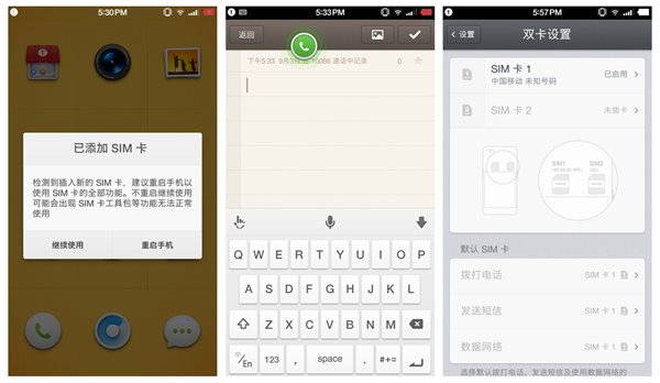 ▲最基础的通话功能,对于插入SIM后为何需要重启,Smartisan OS做了大量的说明信息,相比那些直接粗暴弹出“手机需要重启!”提示窗的手机来说,好感值倍增。