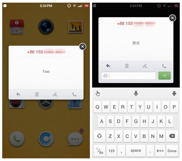 ▲短信功能,仍然提供最基础的弹窗功能,而不是与大量的通知信息混在一起,默认情况下不显示底部按钮,需要下拉一次后才可执行其他操作。