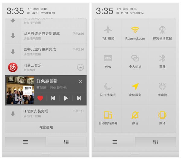 ▲在Smartisan OS中,系统中的社交类软件消息提醒会单独以不同的图标进行识别,QQ、微信、微博等的社交软件消息会在通知栏中以两个小人的图标进行标注,带圈数字则是用来显示其他通知消息。