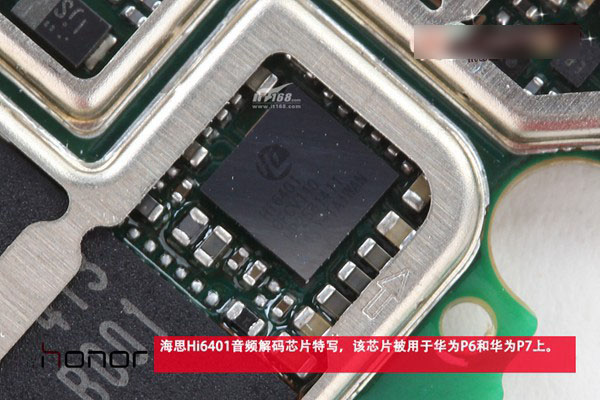 图为海思Hi6401音频解码芯片特写,该芯片也被用于华为P6和华为P7手机上。