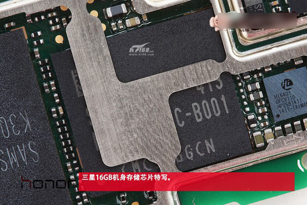 华为荣耀6采用的是三星16GB ROM存储芯片,如下图所示: