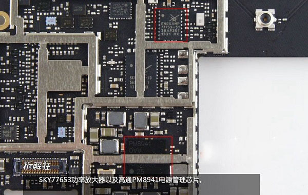 SKY77653功率放大器以及高通PM8941电源管理芯片。