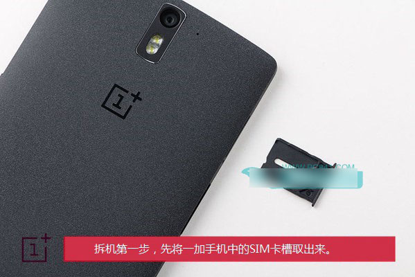 一加手机拆机第一步,首先取出侧面的SIM卡槽,如下图所: