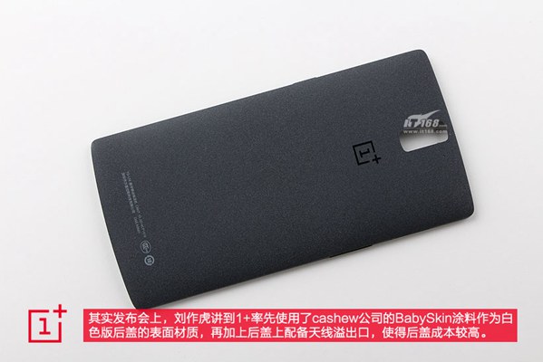 一加手机发布会上,刘作虎降到1+率先使用了cashew公司的BabySkin涂料作为白色版后盖的表面材质,再加上后盖上配备天线溢出口,使得后盖成本较高。