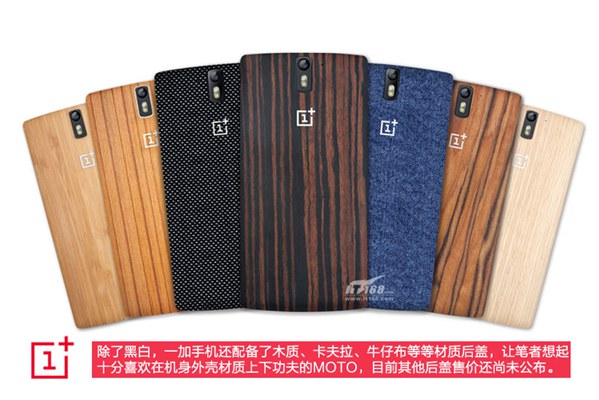 除了黑白,一加手机还配备了木质、卡夫拉、牛仔布等等材质后盖,让笔者想起十分喜欢在机身外壳材质上下功夫的MOTO,目前其他后盖售价尚未公布。