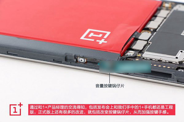 通过1+产品经历的交流得知,包括发布会上和我们手中的1+手机都还是工程版,正式版上还有很多的改进,就包括改变按键锅仔片,从而加强按键手感。