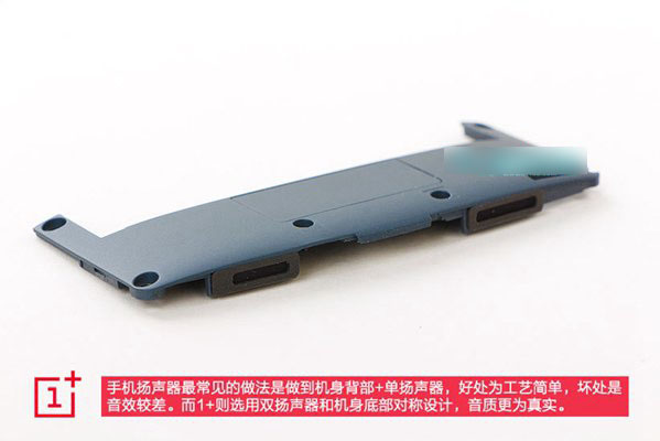 手机扬声器最常见的做法是做到机身背部+单扬声器,好处为工艺简单,坏处是音效较差。而1+则选用双扬声器和机身顶部对称设计,音质更为真实。