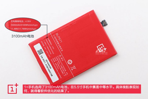 1+手机选用3100mAh电池,在5.5寸手机中算是中等水平。具体续航表现如何,就得看软件优化的结果了。