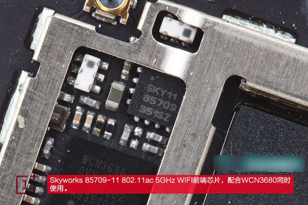 高通WCN3680 WIFI、蓝牙、FM收音机芯片。支持802.11ac 5GHZ WIFI和蓝牙4.0。
