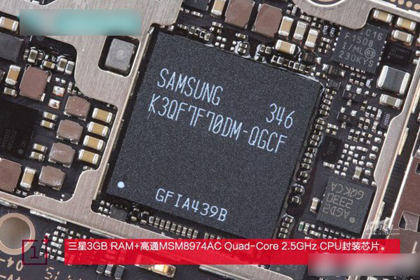 三星3GB RAM+高通MSM8974AC Quad-Core 2.5GHz CPU封装芯片。