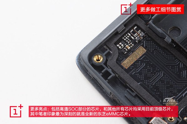 更多亮点 :包括高通SOC部分的芯片,和其他所有芯片均采用目前顶级芯片,其中笔者印象最为深刻的就是全新的东芝eMMC芯片。
