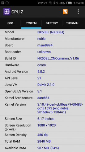 nubia Z9是全球首款无边框手机,该机配备骁龙810拥有强大性能,并辅以3GB RAM和32GB ROM。处理器支持丰富的原生4K超高清界面和视频,同时配备升级版摄像头组件,支持陀螺仪稳定及3D降噪技术。此外骁龙810还集成14位双影像信号处理器,可支持1.2GP/s吞吐量以及最高5500万像素的图像传感器。接下来我们通过几个测试软件来看看骁龙810的性能到底如何。