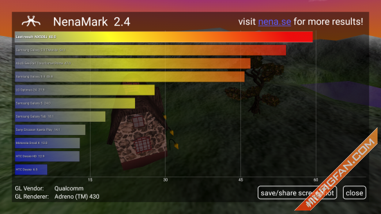 NenaMark2是一款面向Android智能手机的图形处理能力测试工具,通过一段视频Demo的播放测试手机图形处理单元的硬件加速能力。