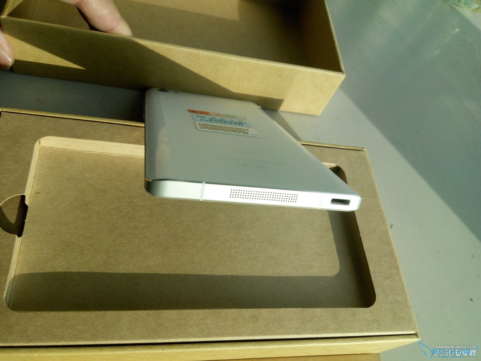 顶部,天线设计有些IPhone风格,边框精细度比米4有过无不及。