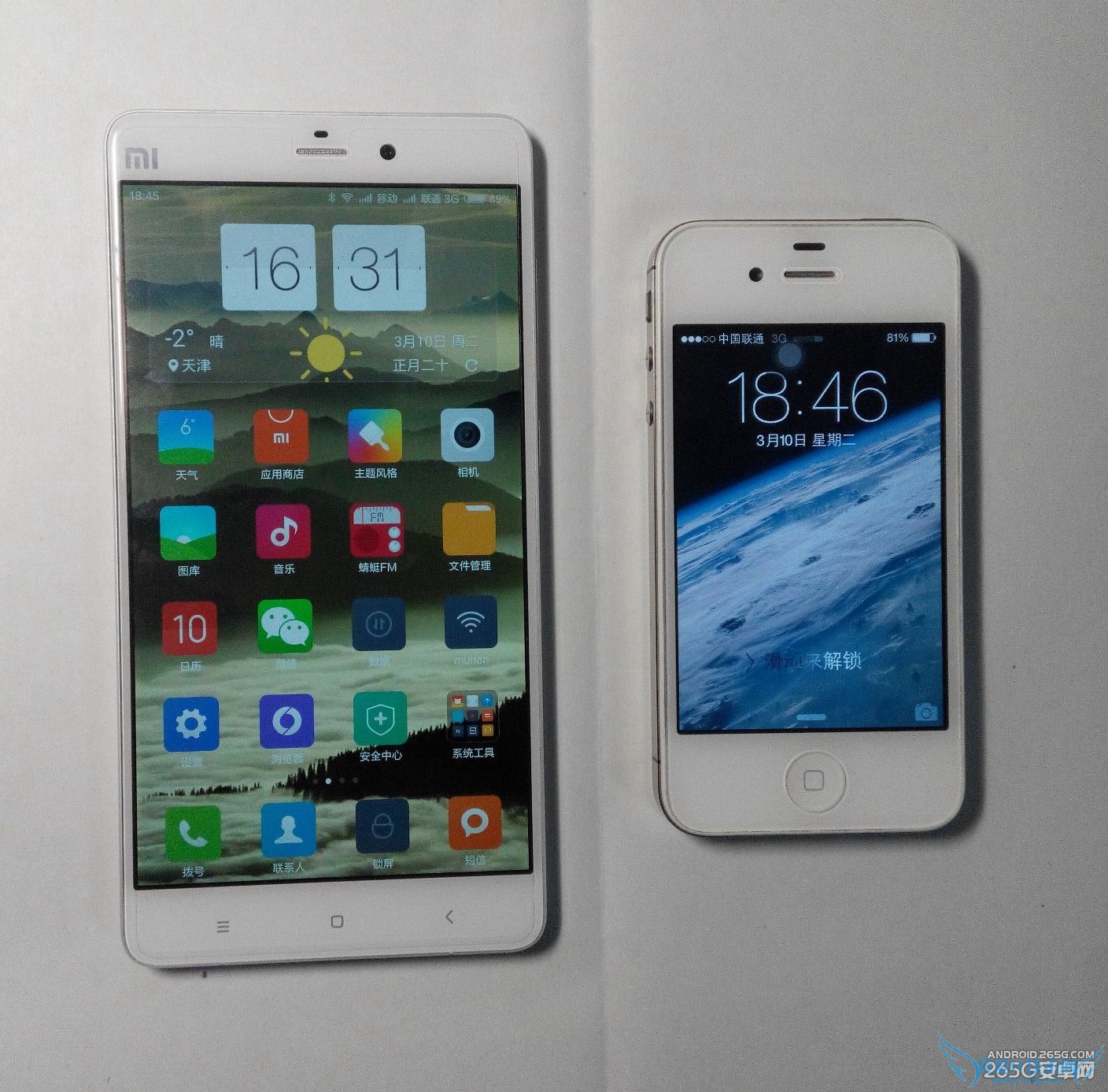 小米note开箱评测 与iPhone4s/iPhone6 Plus外观对比