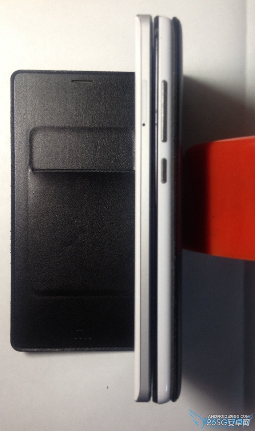 侧面比较,红米Note由于前面板是黑的,所以照片显示不明显,实际手感厚许多。