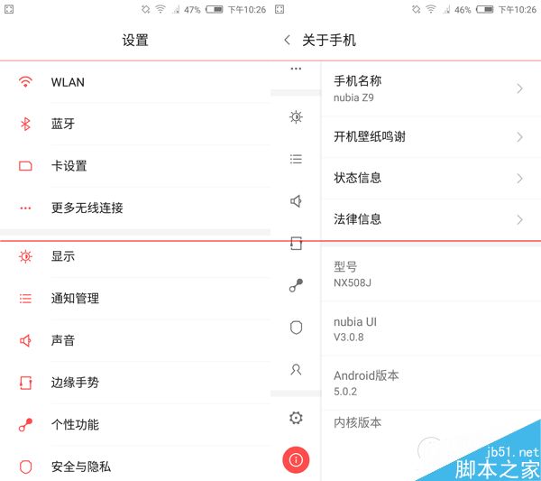 系统层面,nubia Z9搭载的是基于Android 5.0.2的nubia UI 3.0.8版本,与之前的2.8版本一样,图标设计风格趋近于扁平化风格,图标配色五颜六色。