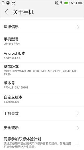 与最近发布的联想机型一样,P70同样搭载了联想引以为傲的VIBE UI,其基于Android 4.4.4深度优化,界面华丽程度与人性化功能相对于原生系统来讲都有较大的改进,更为符合国内用户的使用习惯。
