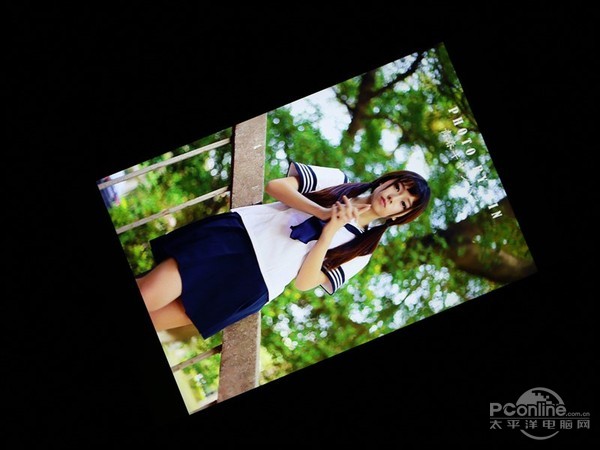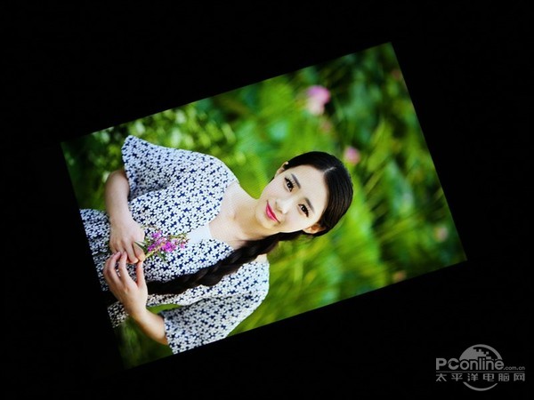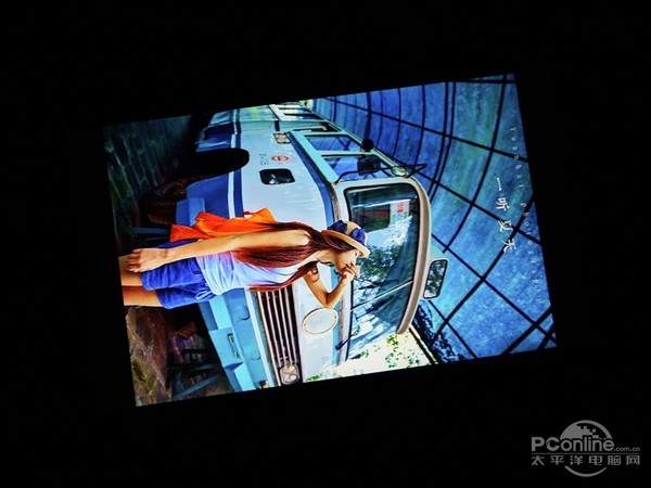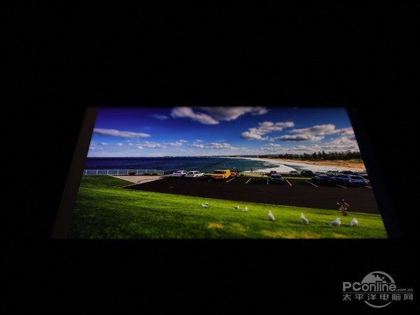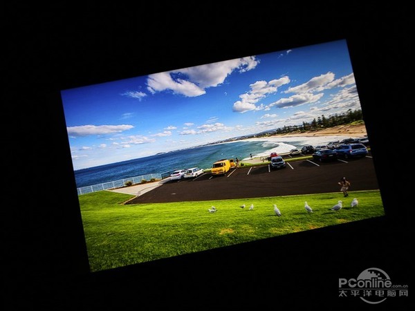而在低角度测试当中,可与看到虽然屏幕亮度有所降低,但依旧保持较高的饱和度,显示效果鲜艳,而在漏光控制方面,与高端机型相比还存在差距。