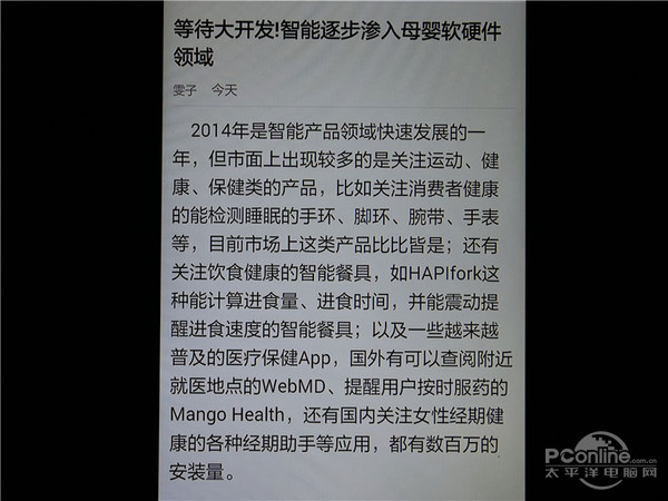 联想P70的屏幕尺寸为5.0英寸,分辨率1280x720,通过计算可以知道屏幕PPI为294,接近视网膜屏幕300PPI的标准。在近距离查看时,文字边缘有一定的锯齿感,但在正常距离观看时效果还比较细腻的,难以察觉像素点。