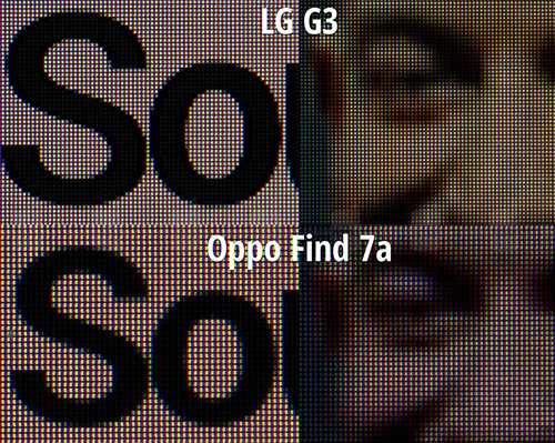 LG G3屏幕细腻程度对比