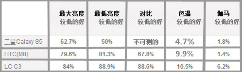 屏幕表现对比表格